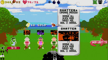 Finished the game, it's a good battle system and I definitely enjoyed trying to get big early in a fight with 'Clingy' cards before focusing down on the enemy. Personally, I'd have liked even bigger sizes to grow into, and the secret ending was a funny surprise. :>3